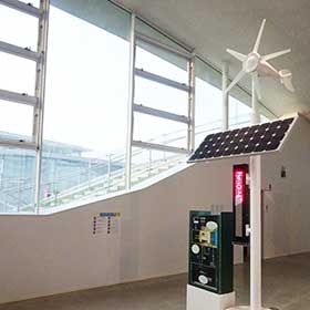 Hybrid power system can be used as a stable power source by temporarily storing the power generated in batteries. It is a useful system in places with no power sources, or at times of disaster and other emergency situations. -