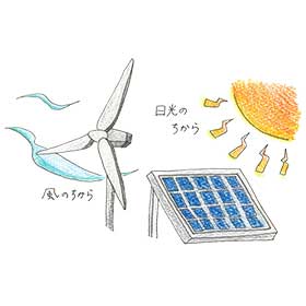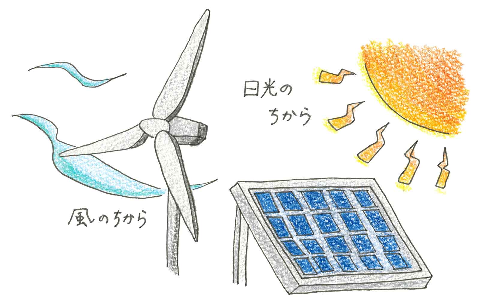Sunlight, solar heat, wind, hydropower, geothermal, wave, and biomass are natural energy that can be used repeatedly and do not diminish, as compared to finite resources such as crude oil. These are called renewable energy.