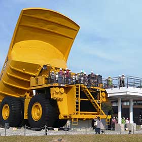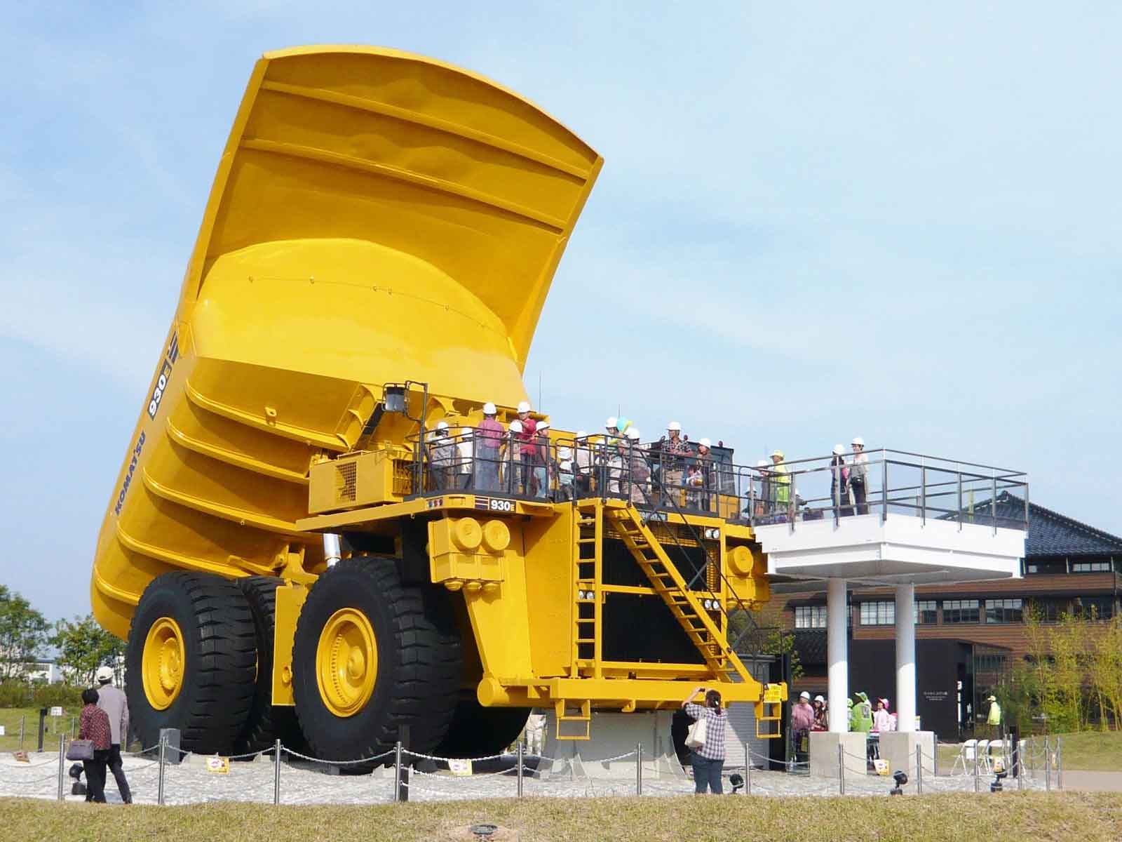 There is JR Komatsu station, Komatsu airport, and the Komatsu Japan Air Self-Defense Force base on the west. You can also see Komatsu's 930 E dump truck. Enjoy the view of the vehicle town, Komatsu. -