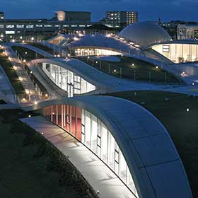 This museum was built hoping to be a "natural hill", in other words, a satoyama in the downtown. While making the full use of the natural environment in this area, we introduced rooftop gardening to integrate the landscape and the building. You can cross the premises through the walkway on the rooftop. Walking through a restaurant or the Hill of the Wind, you can glimpse many activities in the museum facility.