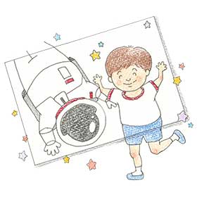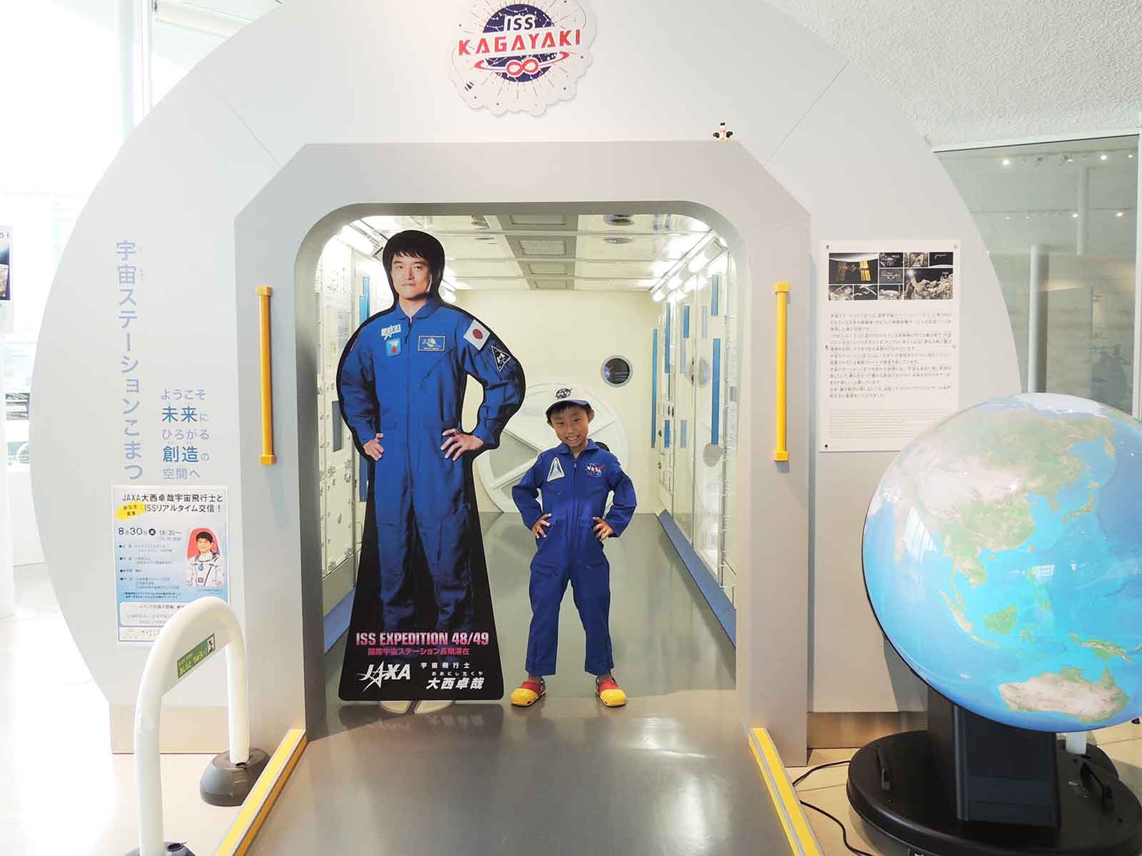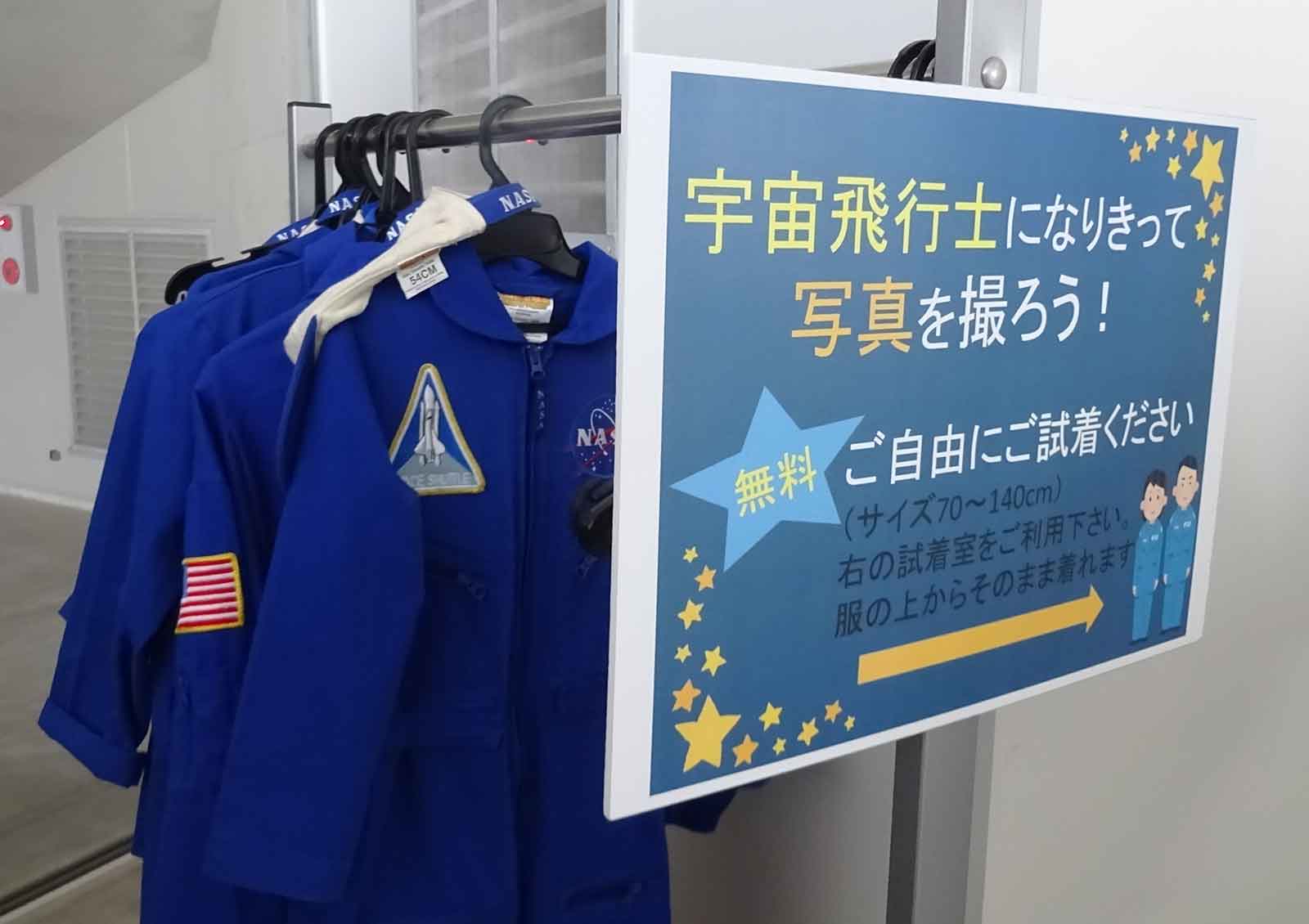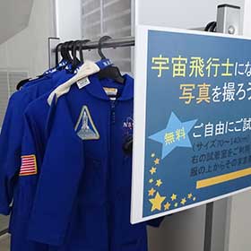 You can put on a blue suit that astronauts wear during training or interviewed. Various sizes, for children and adults, are available. We recommend taking photos in the replica of Japanese Experiment Module "Kibo". -