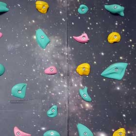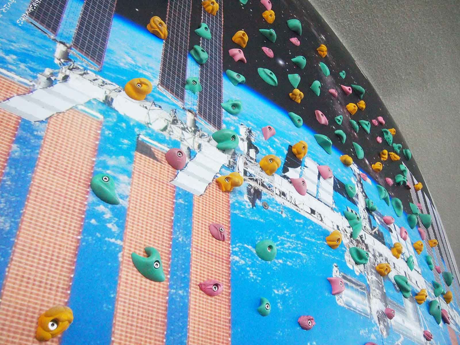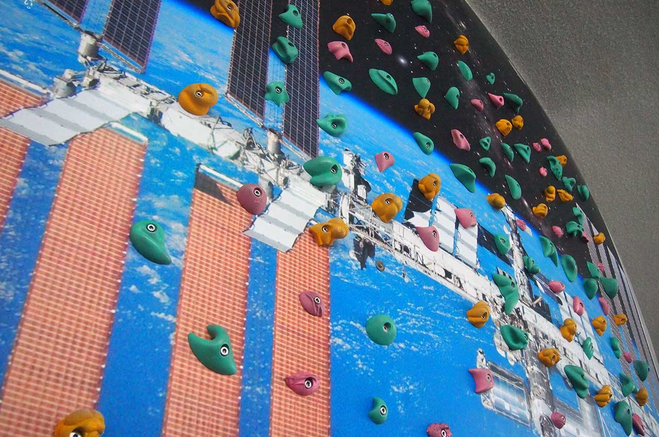 You will see a bouldering wall to the left of the entrance. The painting of the International Space Station added on the wall in 2016 has made the wall much more attractive. Bouldering for both children and adults is also available on the open-air wall at the roof of the 3D Studio.
