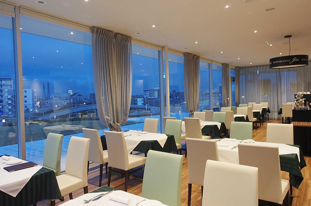 This is an Italian restaurant on the second floor. The name Jin means compassion in Japanese, which is taken from the spirits of "Kanjincho" (one of the 18 Kabuki Plays in Ichikawa style): wisdom, compassion, and courage. The story was set in Komatsu. Enjoy seasonal dishes with local ingredients and the view of our sacred Mt. Hakusan.
