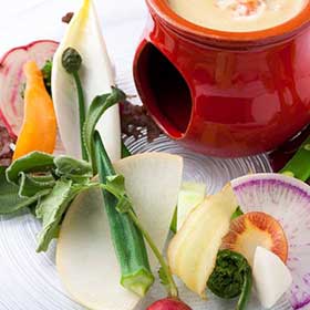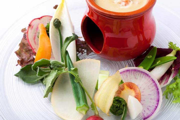 The restaurant offers various dishes with locally grown vegetables, including JAS certified organic vegetables from Nishida Farm in Komatsu. We hope you to enjoy the taste of the ingredients themselves. -